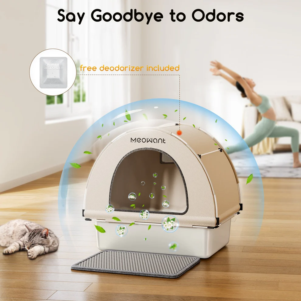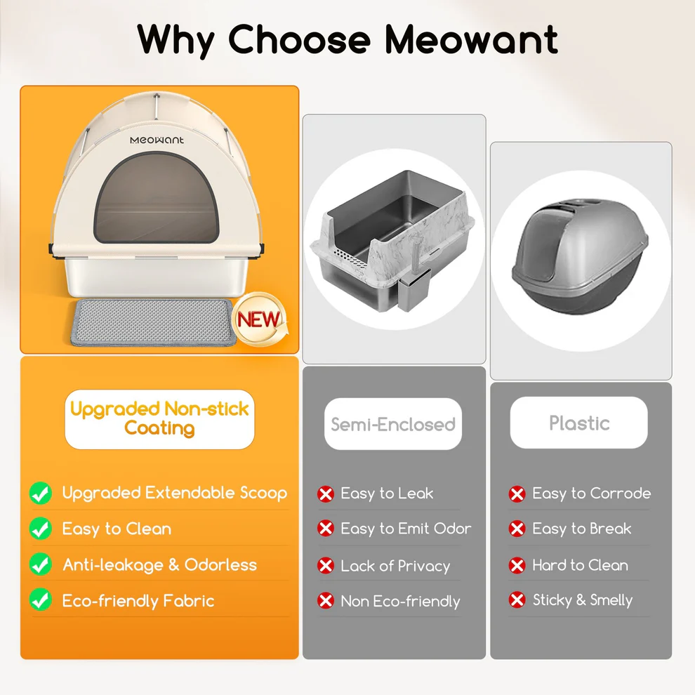 Meowant 3-In-1 Stainless Steel Cat Litter Box With Lid